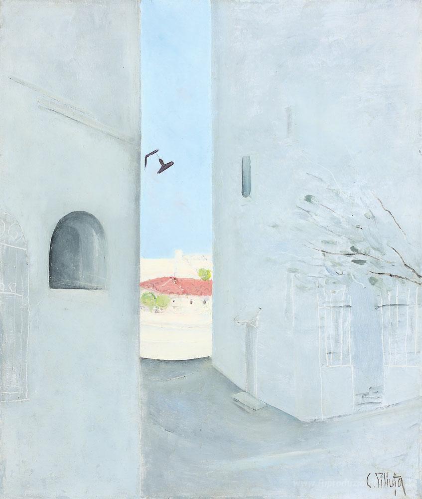 Ti offriamo una riproduzione artigianale su tela dell'opera famosa 'Via del vento' di Constantin Piliuta, dal Museo delle Riproduzioni.