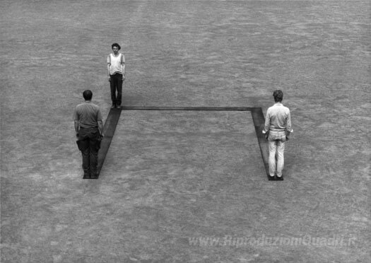 Ti offriamo una riproduzione artigianale su tela dell'opera famosa 'Di fronte e lateralmente Spazio Circuit' di Franz Erhard Walther, dal Museo delle Riproduzioni.
