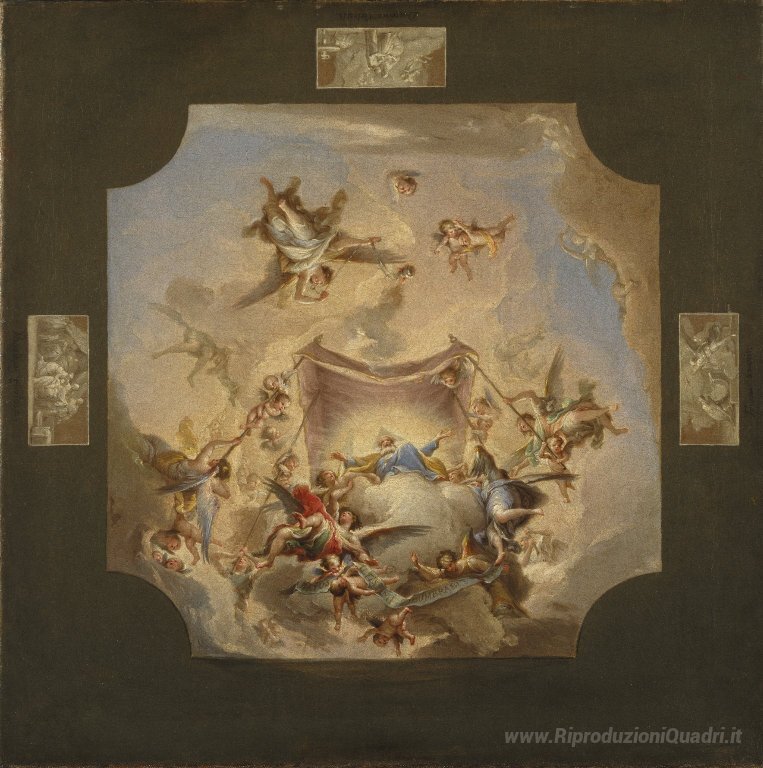 Ti offriamo una riproduzione artigianale su tela dell'opera famosa 'Il Padre Eterno' di Francisco Bayeu y Subias, dal Museo delle Riproduzioni.