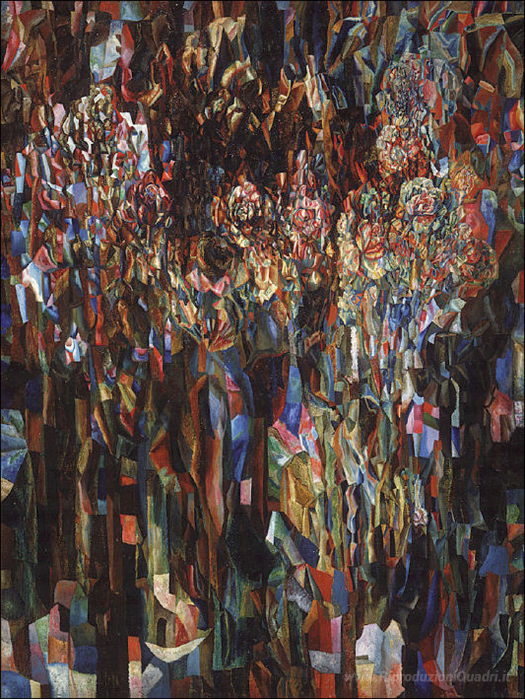 Ti offriamo una riproduzione artigianale su tela dell'opera famosa 'Fiori di fioritura Universale' di Pavel Filonov, dal Museo delle Riproduzioni.