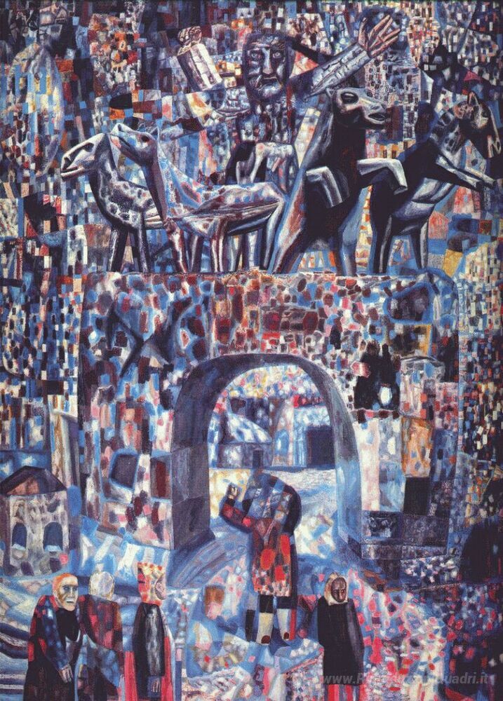Ti offriamo una riproduzione artigianale su tela dell'opera famosa 'Il Narva Gates' di Pavel Filonov, dal Museo delle Riproduzioni.
