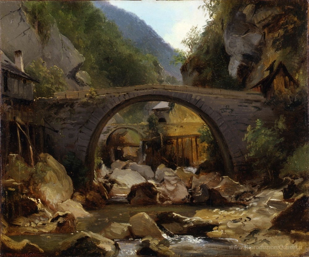 Ti offriamo una riproduzione artigianale su tela dell'opera famosa 'Mountain Stream in Alvernia' di Theodore Rousseau, dal Museo delle Riproduzioni.