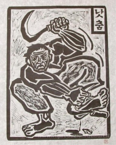 Ti offriamo una riproduzione artigianale su tela dell'opera famosa 'Coreano Falce Danza' di Hong Song-dam, dal Museo delle Riproduzioni.