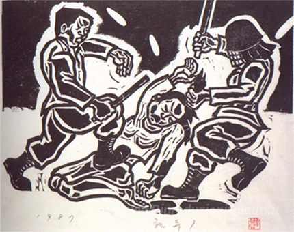 Ti offriamo una riproduzione artigianale su tela dell'opera famosa 'Protesta' di Hong Song-dam, dal Museo delle Riproduzioni.