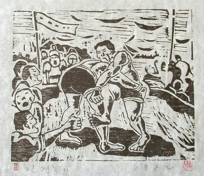 Ti offriamo una riproduzione artigianale su tela dell'opera famosa 'Wrestling partita' di Hong Song-dam, dal Museo delle Riproduzioni.