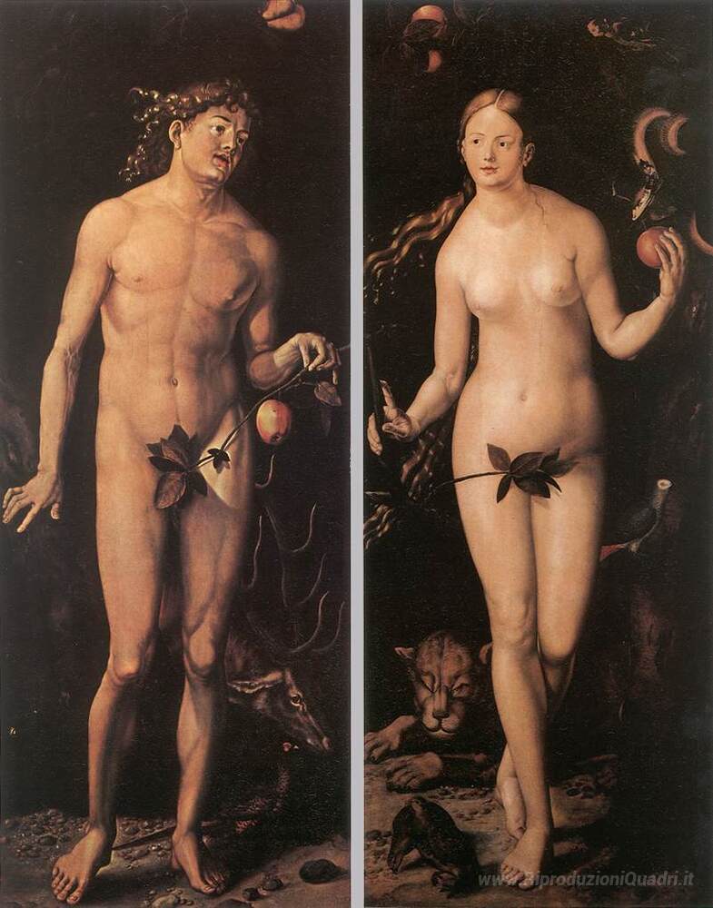 Ti offriamo una riproduzione artigianale su tela dell'opera famosa 'Adam e Eve' di Hans Baldung, dal Museo delle Riproduzioni.