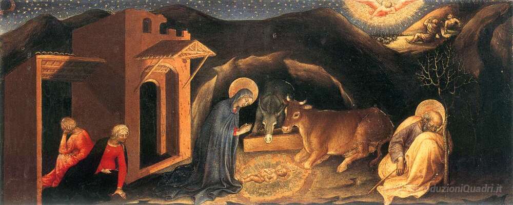 Ti offriamo una riproduzione artigianale su tela dell'opera famosa 'Adorazione dei Magi Pala, mano sinistra del pannello predella ra' di Gentile da Fabriano, dal Museo delle Riproduzioni.