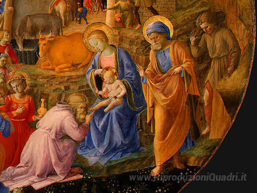 Ti offriamo una riproduzione artigianale su tela dell'opera famosa 'Adorazione dei Magi (particolare)' di Filippo Lippi, dal Museo delle Riproduzioni.