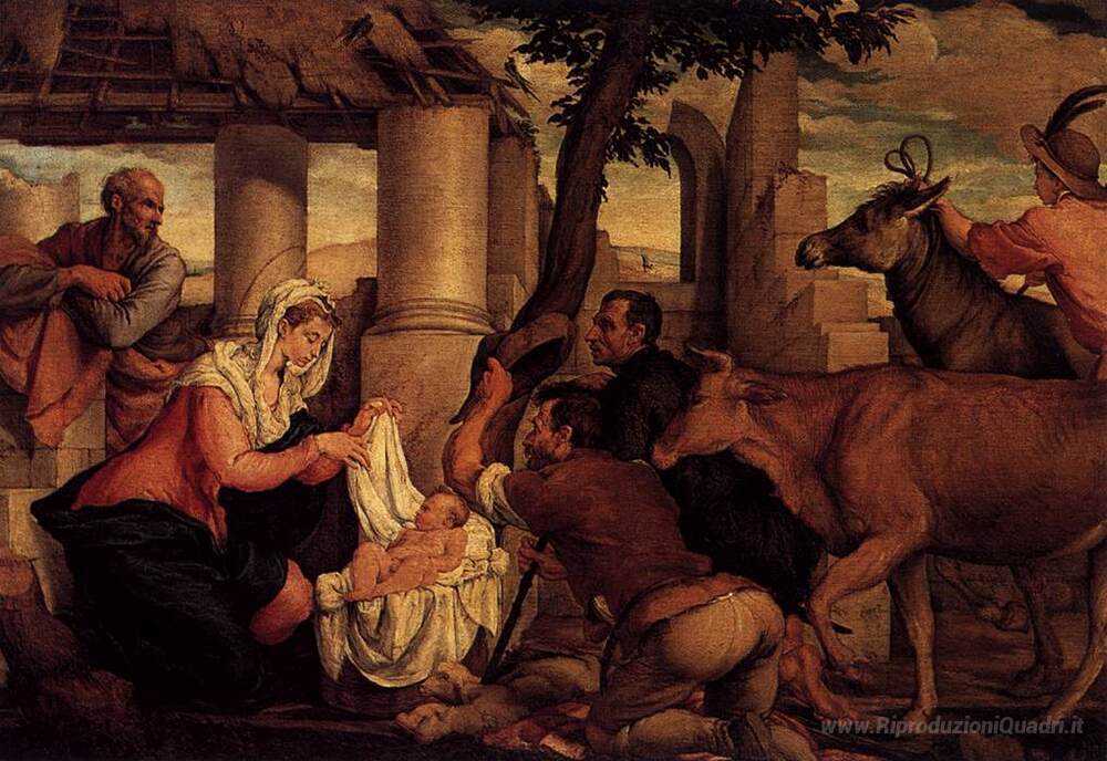 Ti offriamo una riproduzione artigianale su tela dell'opera famosa 'Adorazione dei pastori' di Jacopo Bassano, dal Museo delle Riproduzioni.