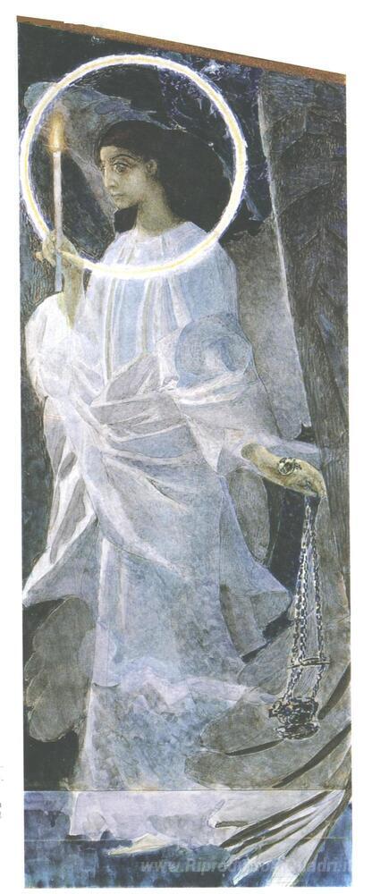 Ti offriamo una riproduzione artigianale su tela dell'opera famosa 'Angelo con turibolo e la candela' di Mikhail Vrubel, dal Museo delle Riproduzioni.