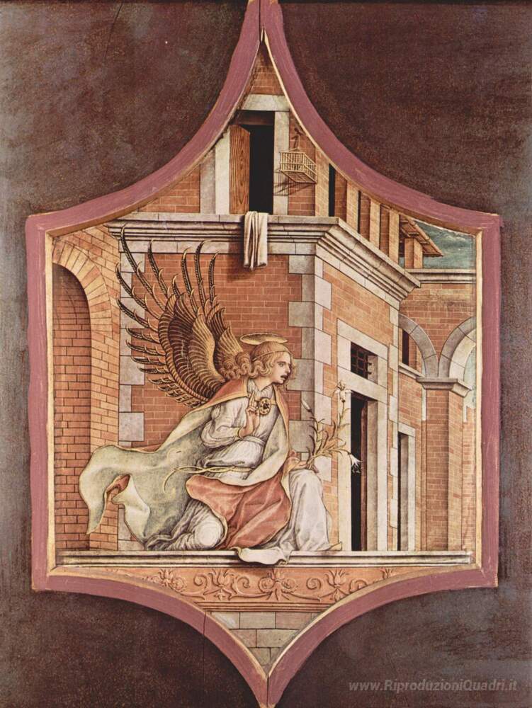 Ti offriamo una riproduzione artigianale su tela dell'opera famosa 'Angelo dell'Annunciazione' di Carlo Crivelli, dal Museo delle Riproduzioni.