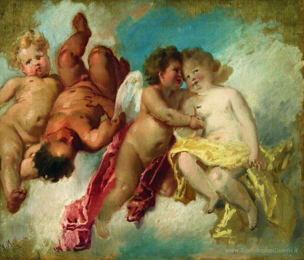 Scoprite l'incanto del dipinto a olio Angels dell'artista russo Konstantin Makovsky, una straordinaria espressione di maestria pittorica e fascino romantico. Nato nel 1839, Makovsky è noto per la sua profonda capacità di catturare la bellezza e il sentimento umano attraverso le sue opere d’arte. Con uno stile che fonde elementi del realismo e dell'accademismo, il suo approccio si distingue per l'uso vibrante del colore e la raffinata resa dei dettagli.