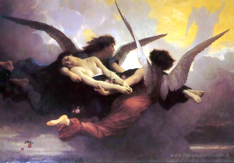 Ti offriamo una riproduzione artigianale su tela dell'opera famosa 'Anima portata in cielo' di William-Adolphe Bouguereau, dal Museo delle Riproduzioni.