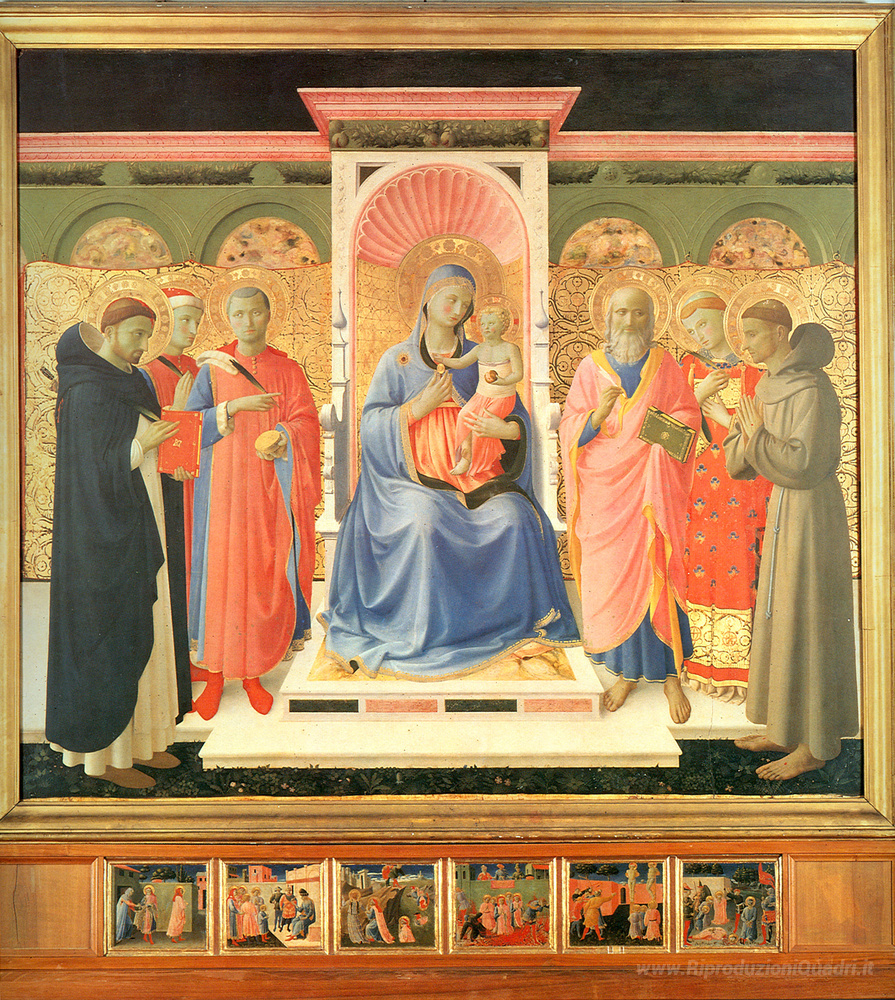 Ti offriamo una riproduzione artigianale su tela dell'opera famosa 'Annalena Pala' di Fra Angelico, dal Museo delle Riproduzioni.