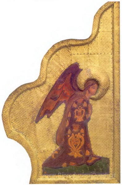 Ti offriamo una riproduzione artigianale su tela dell'opera famosa 'Annunciazione. Arcangelo Gabriele.' di Nicholas Roerich, dal Museo delle Riproduzioni.