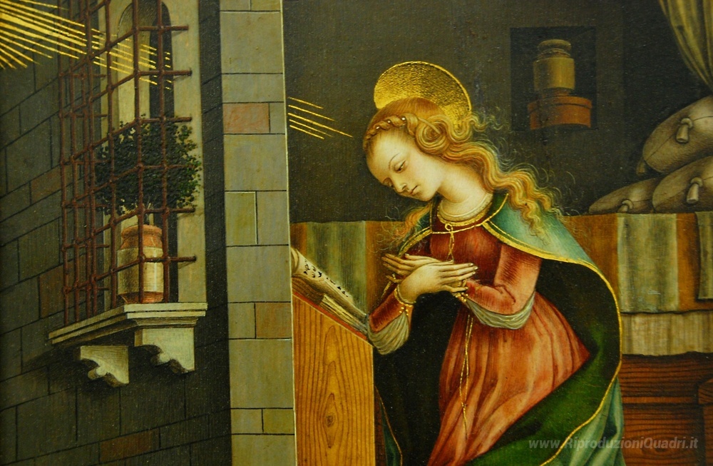 Ti offriamo una riproduzione artigianale su tela dell'opera famosa 'Annunciazione' di Carlo Crivelli, dal Museo delle Riproduzioni.