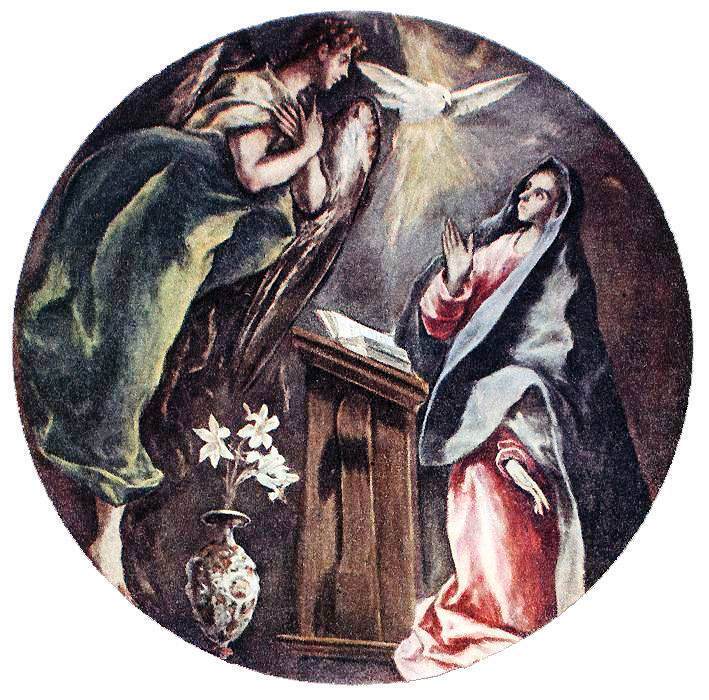 Ti offriamo una riproduzione artigianale su tela dell'opera famosa 'Annunciazione' di El Greco, dal Museo delle Riproduzioni.