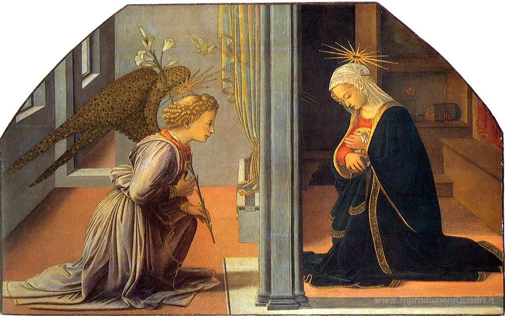 Ti offriamo una riproduzione artigianale su tela dell'opera famosa 'Annunciazione' di Filippo Lippi, dal Museo delle Riproduzioni.