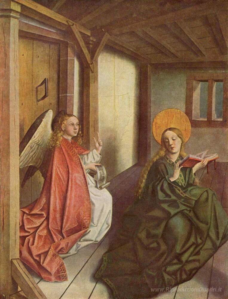 Ti offriamo una riproduzione artigianale su tela dell'opera famosa 'Annunciazione' di Konrad Witz, dal Museo delle Riproduzioni.