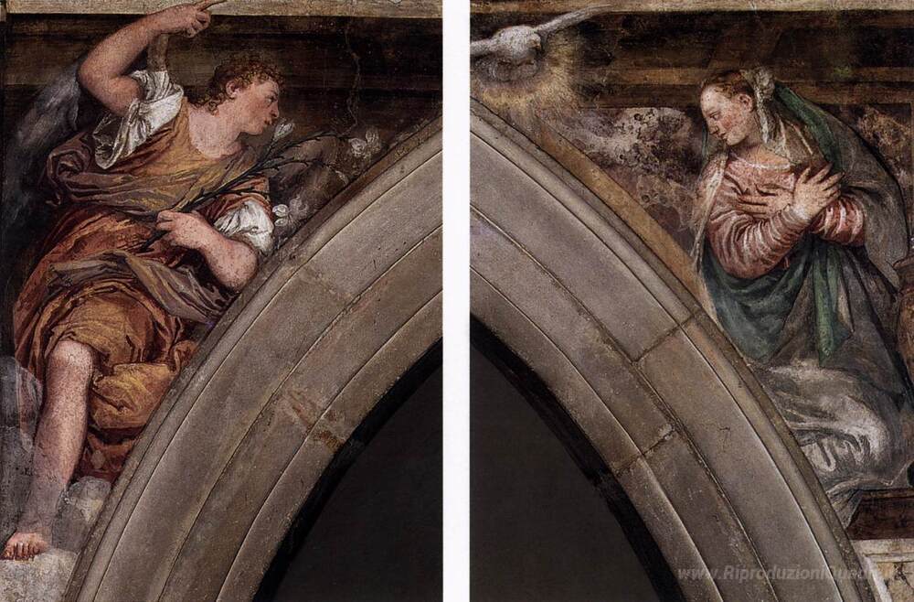 Ti offriamo una riproduzione artigianale su tela dell'opera famosa 'Annunciazione' di Paolo Veronese, dal Museo delle Riproduzioni.