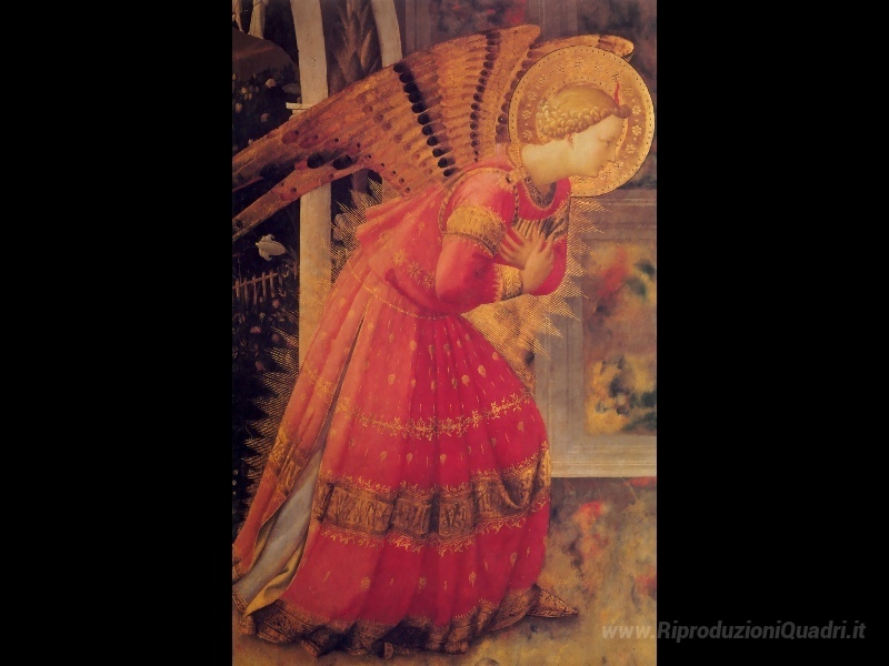 Ti offriamo una riproduzione artigianale su tela dell'opera famosa 'Annunciazione (particolare)' di Fra Angelico, dal Museo delle Riproduzioni.