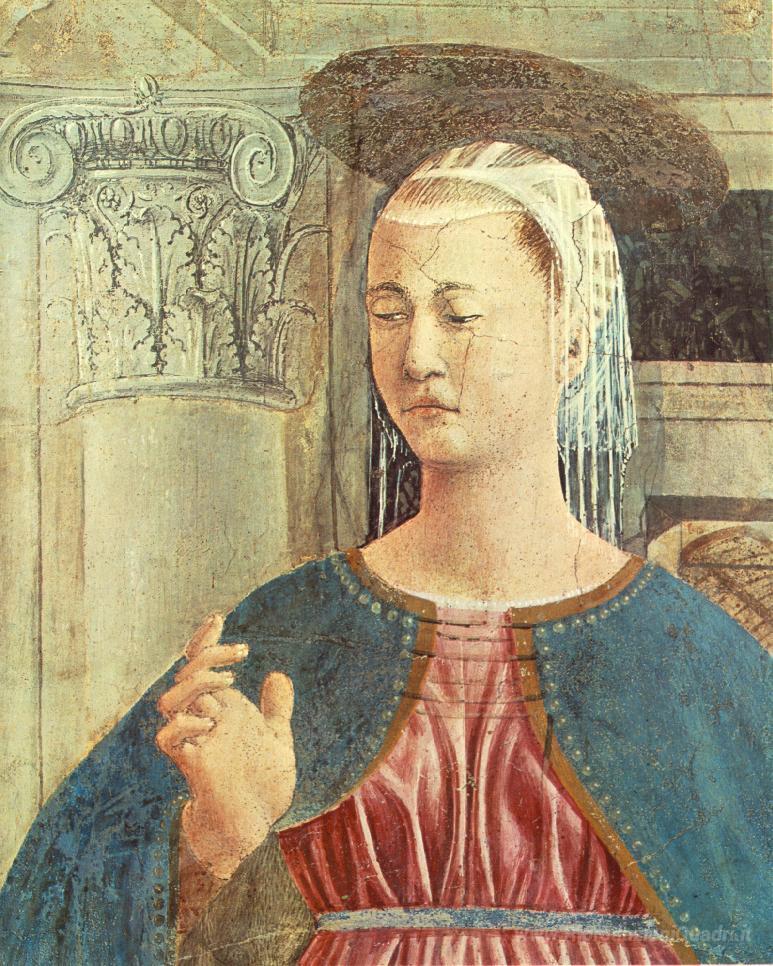 Ti offriamo una riproduzione artigianale su tela dell'opera famosa 'Annunciazione (particolare)' di Piero della Francesca, dal Museo delle Riproduzioni.
