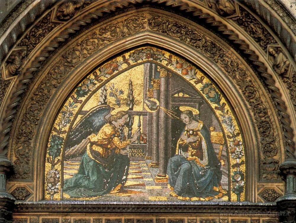 Ti offriamo una riproduzione artigianale su tela dell'opera famosa 'Annunciazione primo piano' di Domenico Ghirlandaio, dal Museo delle Riproduzioni.