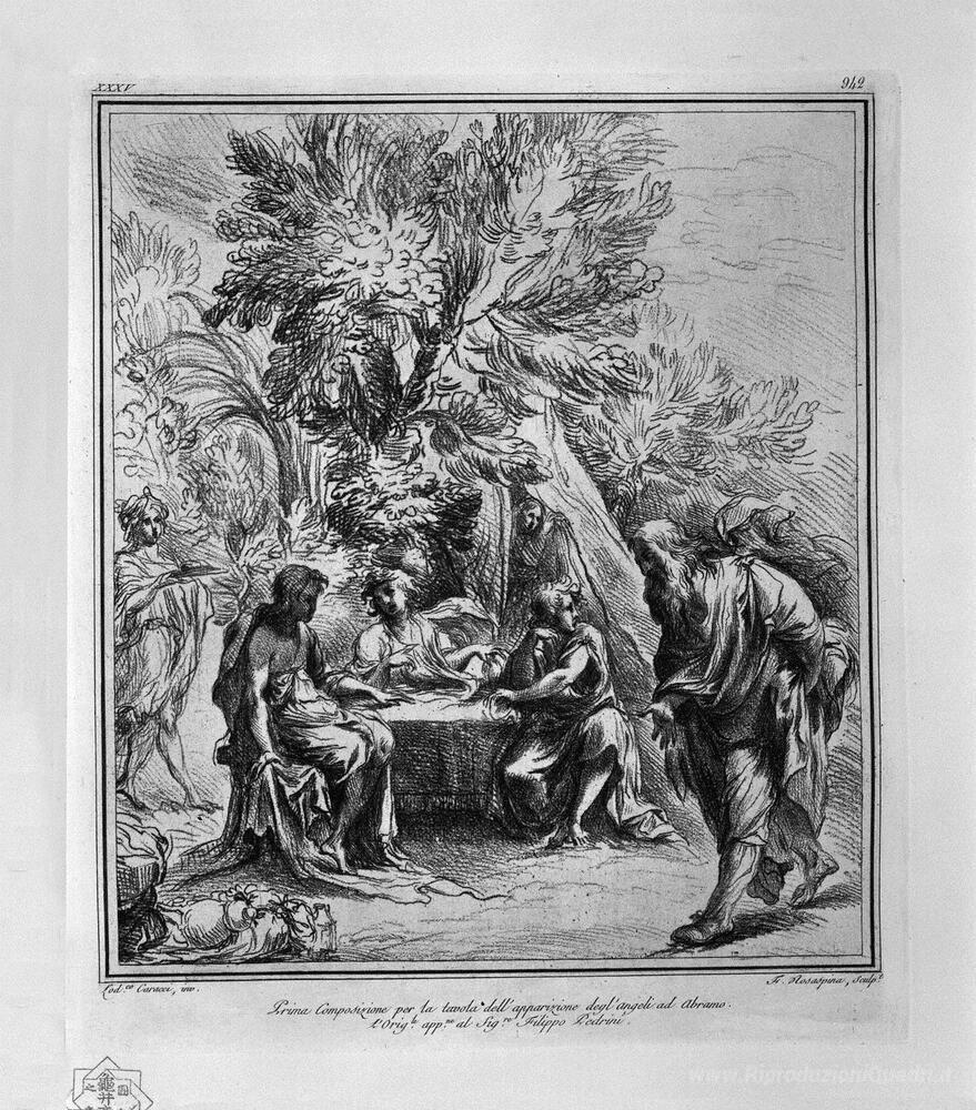 Ti offriamo una riproduzione artigianale su tela dell'opera famosa 'Apparizione degli Angeli ad Abramo, da L Carracci' di Giovanni Battista Piranesi, dal Museo delle Riproduzioni.