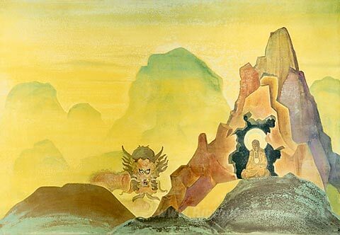 Ti offriamo una riproduzione artigianale su tela dell'opera famosa 'Arhat' di Nicholas Roerich, dal Museo delle Riproduzioni.