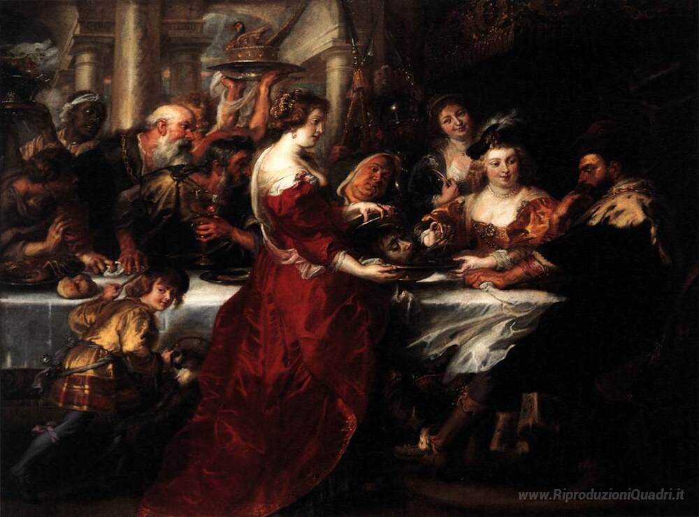Ti offriamo una riproduzione artigianale su tela dell'opera famosa 'Banchetto di Erode' di Peter Paul Rubens, dal Museo delle Riproduzioni.