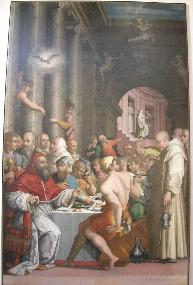 Ti offriamo una riproduzione artigianale su tela dell'opera famosa 'Cena di S. Gregorio Magno (Clemente VII)' di Giorgio Vasari, dal Museo delle Riproduzioni.
