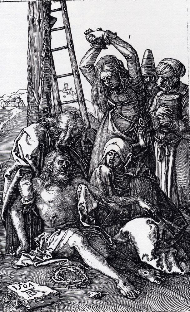 Ti offriamo una riproduzione artigianale su tela dell'opera famosa 'Compianto di Cristo' di Albrecht Durer, dal Museo delle Riproduzioni.