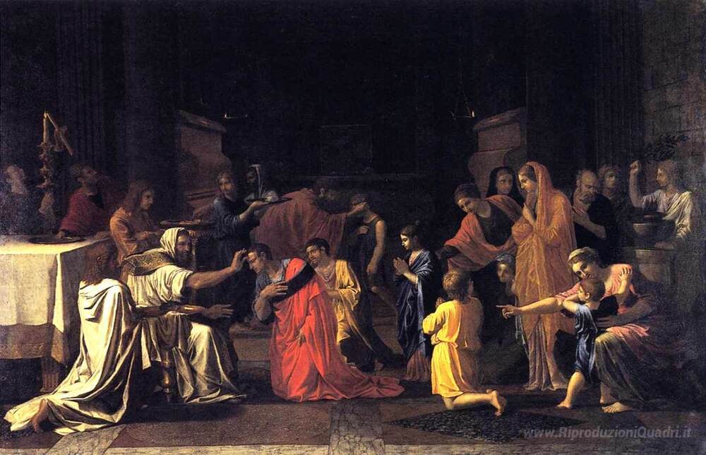 Ti offriamo una riproduzione artigianale su tela dell'opera famosa 'Conferma' di Nicolas Poussin, dal Museo delle Riproduzioni.