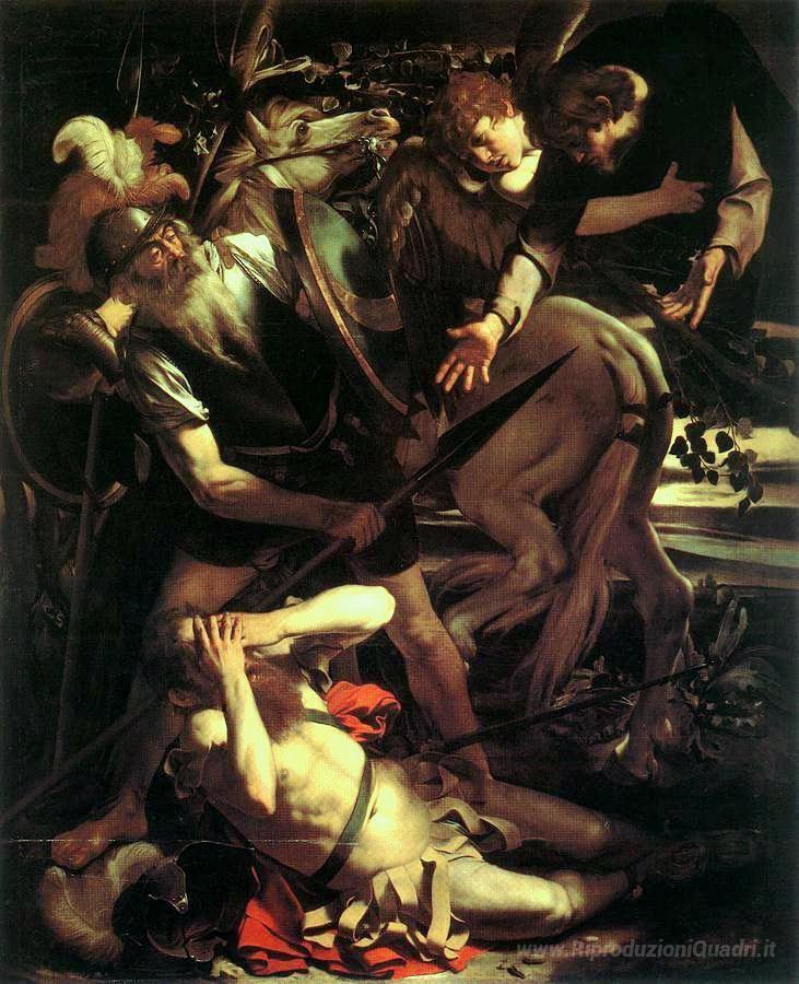 Ti offriamo una riproduzione artigianale su tela dell'opera famosa 'Conversione di San Paolo' di Caravaggio, dal Museo delle Riproduzioni.
