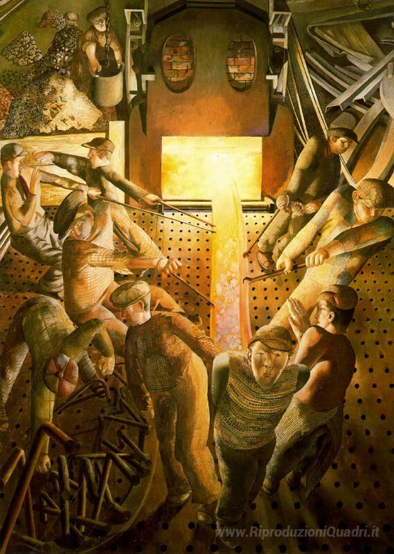 Ti offriamo una riproduzione artigianale su tela dell'opera famosa 'Costruzioni navali sui forni Clyde' di Stanley Spencer, dal Museo delle Riproduzioni.
