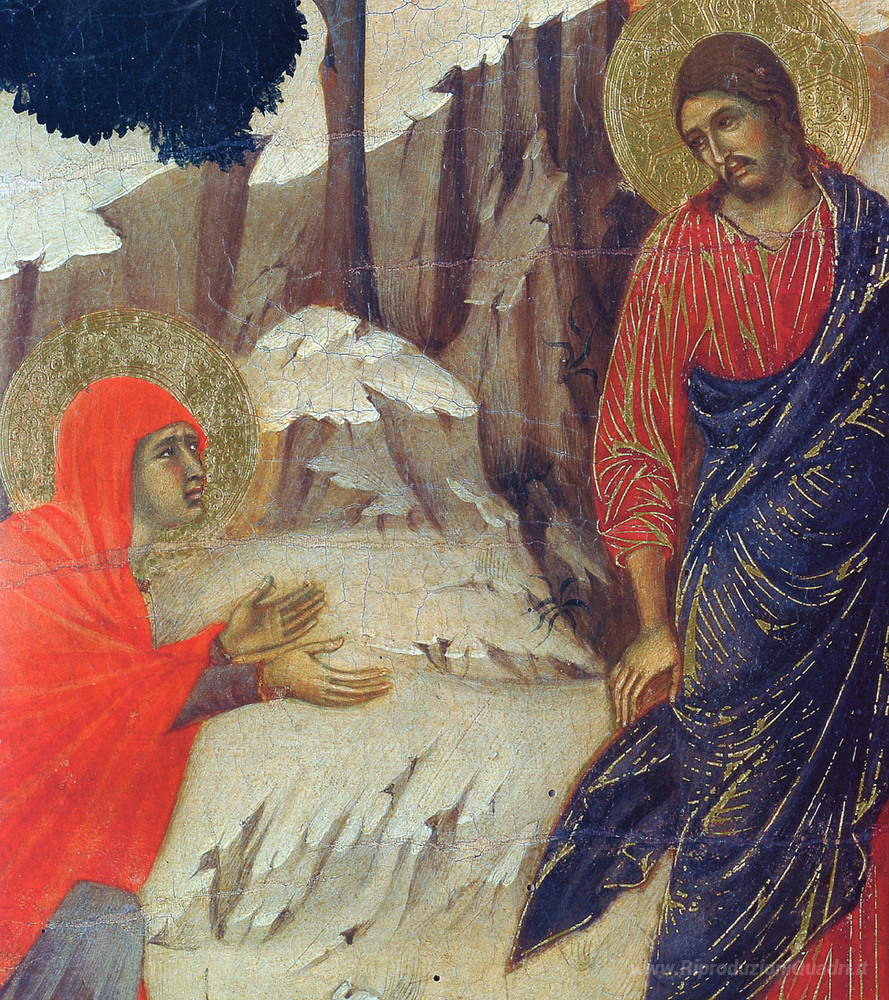 Ti offriamo una riproduzione artigianale su tela dell'opera famosa 'Cristo che appare a Maria Maddalena (frammento)' di Duccio, dal Museo delle Riproduzioni.
