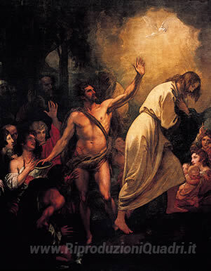 Ti offriamo una riproduzione artigianale su tela dell'opera famosa 'Cristo, che saliva dalla Giordano' di Benjamin West, dal Museo delle Riproduzioni.