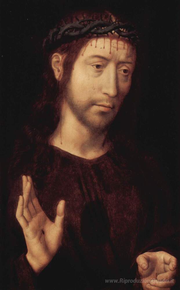 Ti offriamo una riproduzione artigianale su tela dell'opera famosa 'Cristo coronato di spine' di Hans Memling, dal Museo delle Riproduzioni.