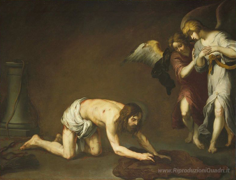 Ti offriamo una riproduzione artigianale su tela dell'opera famosa 'Cristo dopo la Flagellazione' di Bartolome Esteban Murillo, dal Museo delle Riproduzioni.