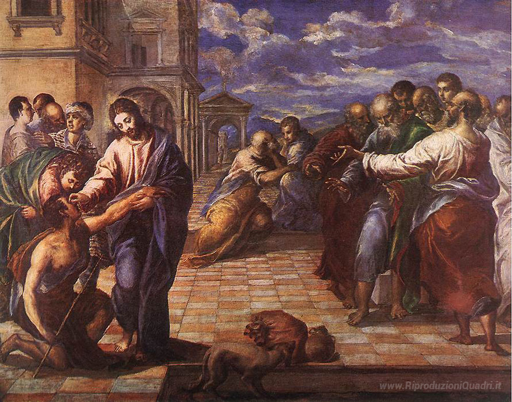 Ti offriamo una riproduzione artigianale su tela dell'opera famosa 'Cristo guarisce il cieco' di El Greco, dal Museo delle Riproduzioni.
