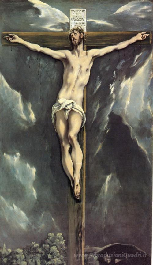 Ti offriamo una riproduzione artigianale su tela dell'opera famosa 'Cristo in croce' di El Greco, dal Museo delle Riproduzioni.