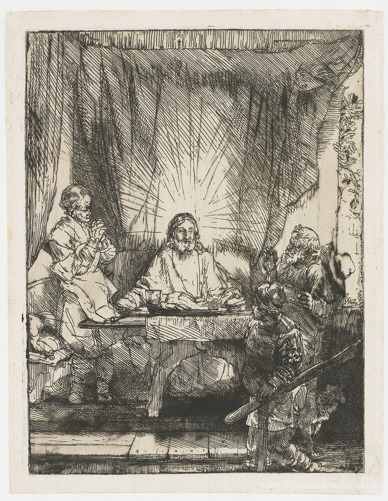 Ti offriamo una riproduzione artigianale su tela dell'opera famosa 'Cristo in Emmaus' di Rembrandt, dal Museo delle Riproduzioni.