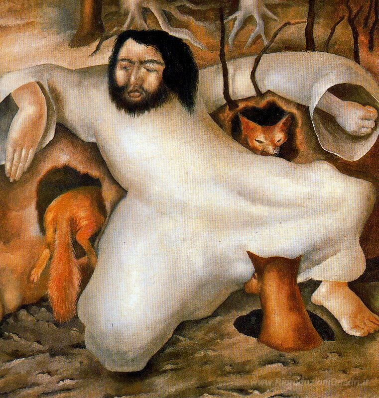 Ti offriamo una riproduzione artigianale su tela dell'opera famosa 'Cristo nel deserto - Le volpi hanno delle tane' di Stanley Spencer, dal Museo delle Riproduzioni.
