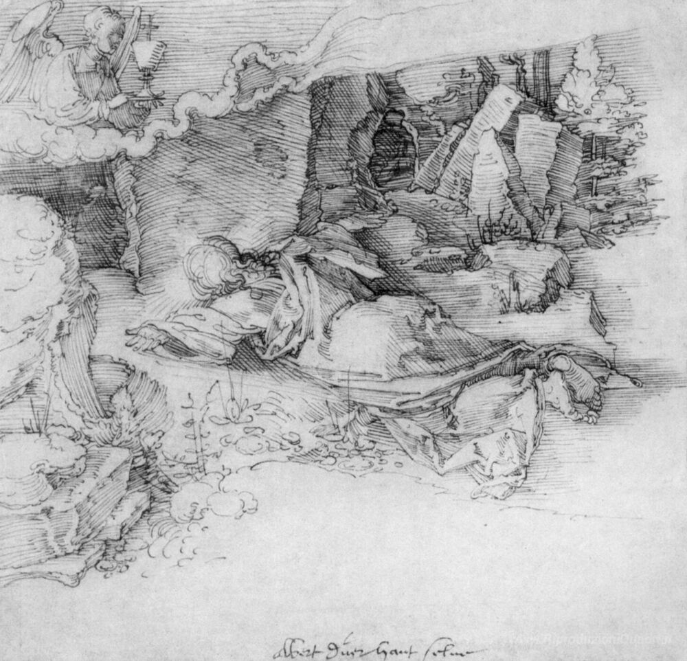 Ti offriamo una riproduzione artigianale su tela dell'opera famosa 'Cristo sul Monte degli Ulivi' di Albrecht Durer, dal Museo delle Riproduzioni.