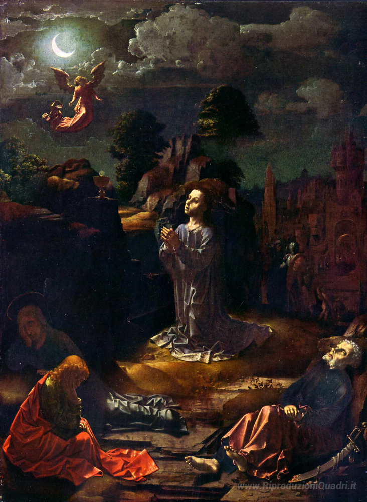 Ti offriamo una riproduzione artigianale su tela dell'opera famosa 'Cristo sul Monte degli Ulivi' di Mabuse, dal Museo delle Riproduzioni.