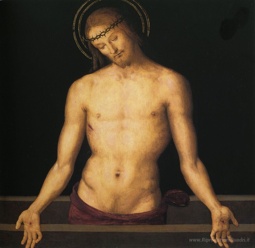 Ti offriamo una riproduzione artigianale su tela dell'opera famosa 'Cristo sul sarcofago' di Pietro Perugino, dal Museo delle Riproduzioni.