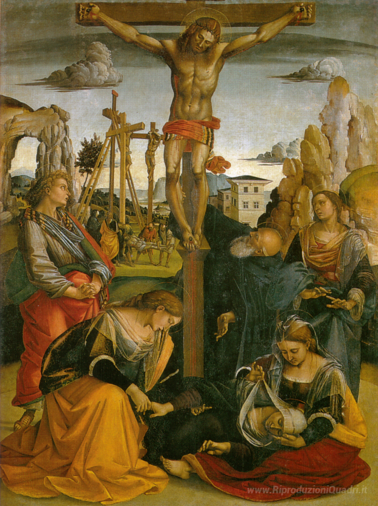 Ti offriamo una riproduzione artigianale su tela dell'opera famosa 'Crocifissione di San Sepolcro' di Luca Signorelli, dal Museo delle Riproduzioni.