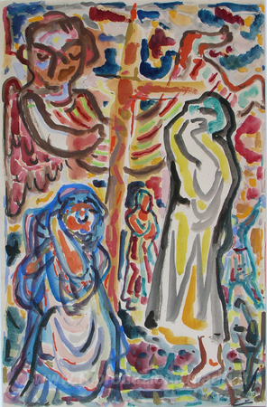 Ti offriamo una riproduzione artigianale su tela dell'opera famosa 'Crocifissione' di Rene Portocarrero, dal Museo delle Riproduzioni.