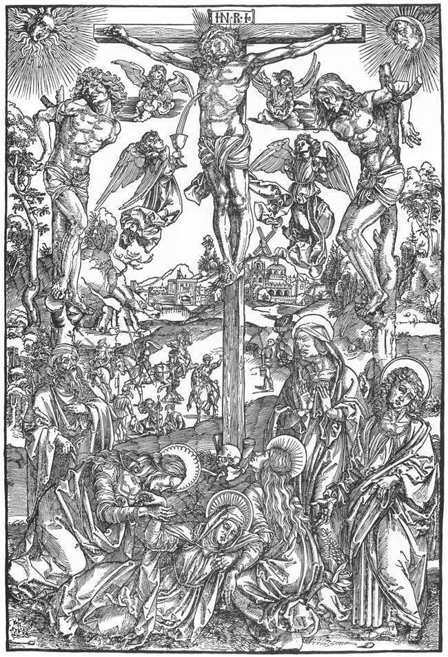 Ti offriamo una riproduzione artigianale su tela dell'opera famosa 'Crocifissione' di Albrecht Durer, dal Museo delle Riproduzioni.