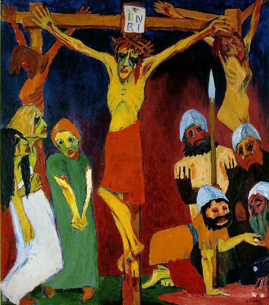 Ti offriamo una riproduzione artigianale su tela dell'opera famosa 'Crocifissione' di Emil Nolde, dal Museo delle Riproduzioni.